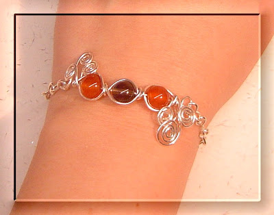 Eka kuvan rannekoru on hopeaa, Karneolia ja Savukvartsia sisältävä koru...
